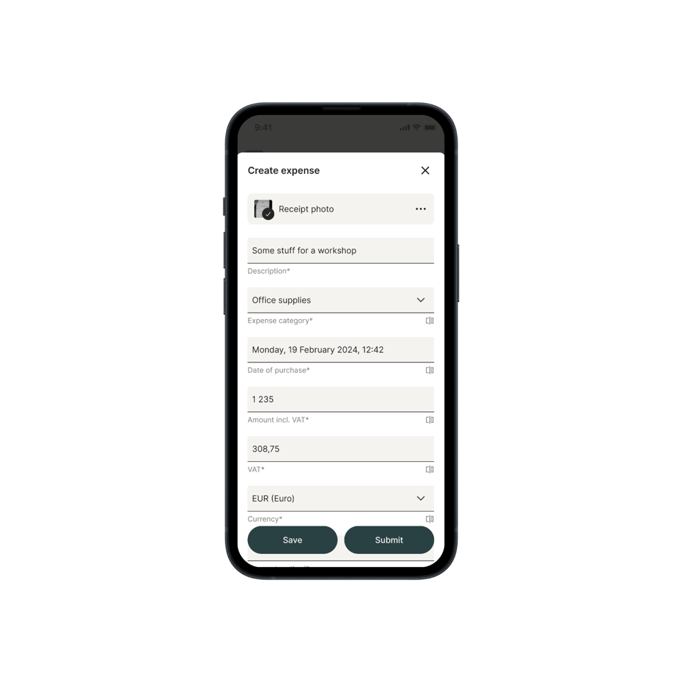 Bifoga kvitton, kategorisera och skicka utläggsdata direkt till bokföringen.